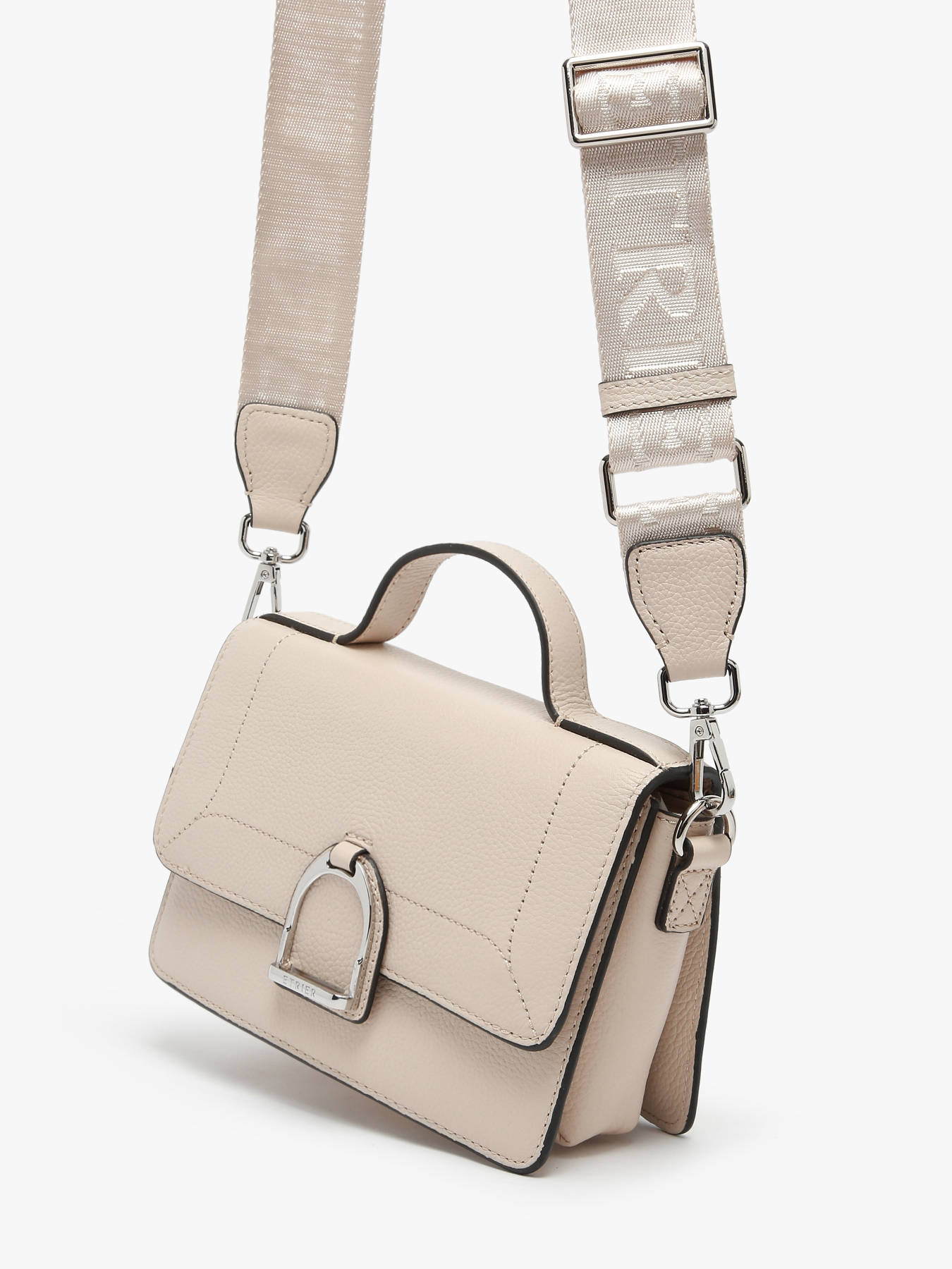 Le sac bandoulière ETRIER de la ligne ALTESSE, de format moyen, est conçu en cuir de vachette. A l’arrière se trouve une poche plate. Il propose une large bandoulière amovible en toile brodée du logo ETRIER ton sur ton, ainsi qu'une anse en cuir. La fermeture à rabat, ornée de l'étrier en métal emblématique de la maison, se sécurise par pression. Polyvalent, il peut être porté en bandoulière ou à la main. À l'intérieur, découvrez un porte-clé en cuir, un compartiment avec une poche simple et une poche éclair pour une organisation optimale. Disponible dans plusieurs coloris saisonniers, ainsi qu'en tailles supérieure et inférieure.